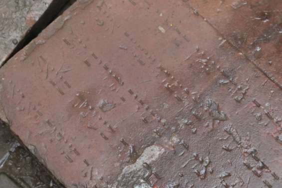 Всего их около сотни. Историки говорят, эти надгробные плиты в советский период забрали с кладбища и замостили ими двор. Датированы они 20-30-е годы прошлого века.