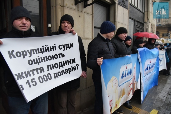Людей вышли на митинг из-за решения Макойды, который днем ранее отпустил под залог виновника гибели трех охранников ПАО Львовхладокомбинат.