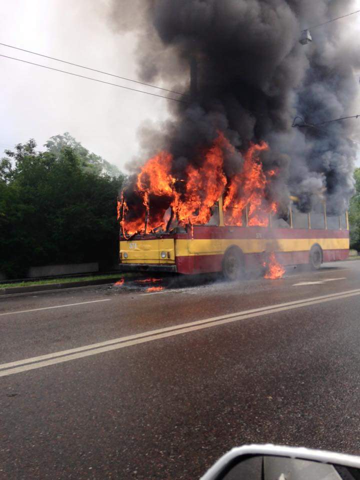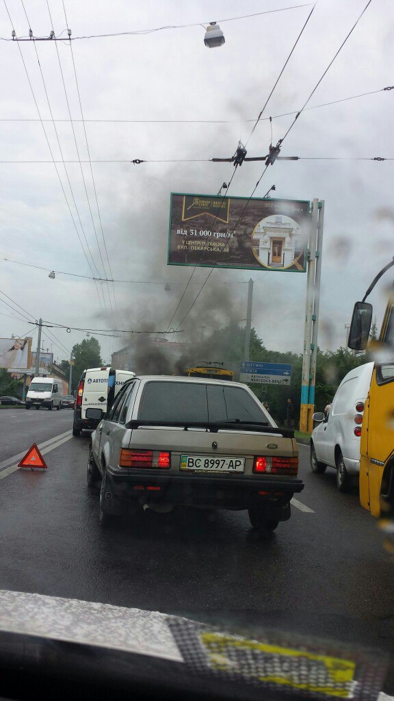 Сегодня во Львове прямо посреди дороги загорелся троллейбус.