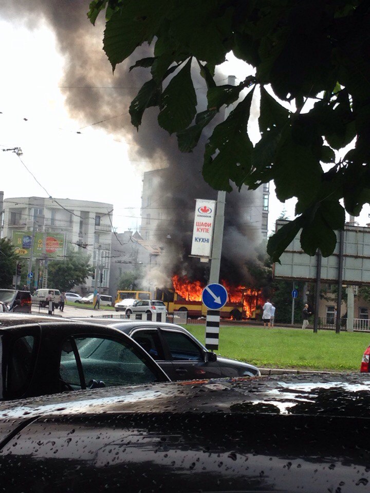 «Начал гореть на мосту, потом отказали тормоза, и троллейбус скатился в дом на углу улиц Кульпарковская — Антоновича, к счастью, пожарные приехали сразу»,-рассказал изданию очевидец пожара.