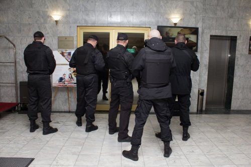 Сейчас в отеле собрались около 10 участников фестиваля. Их охраняют пятеро вооруженных людей в камуфляже без опознавательных знаков, которые представляются работниками частной охранной фирмы.