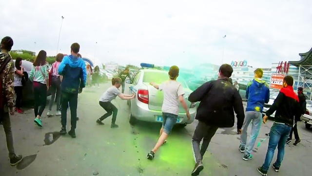 Подростки напали на машины полицейских и забросали их красками во время праздника Холли в Челябинске. Инцидент произошел 27 мая на фестивале красок, который проходил возле одного из местных торговых центров.