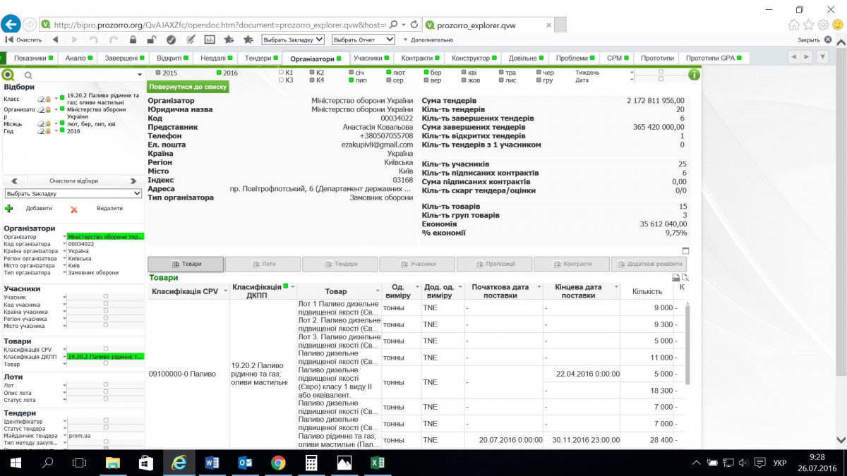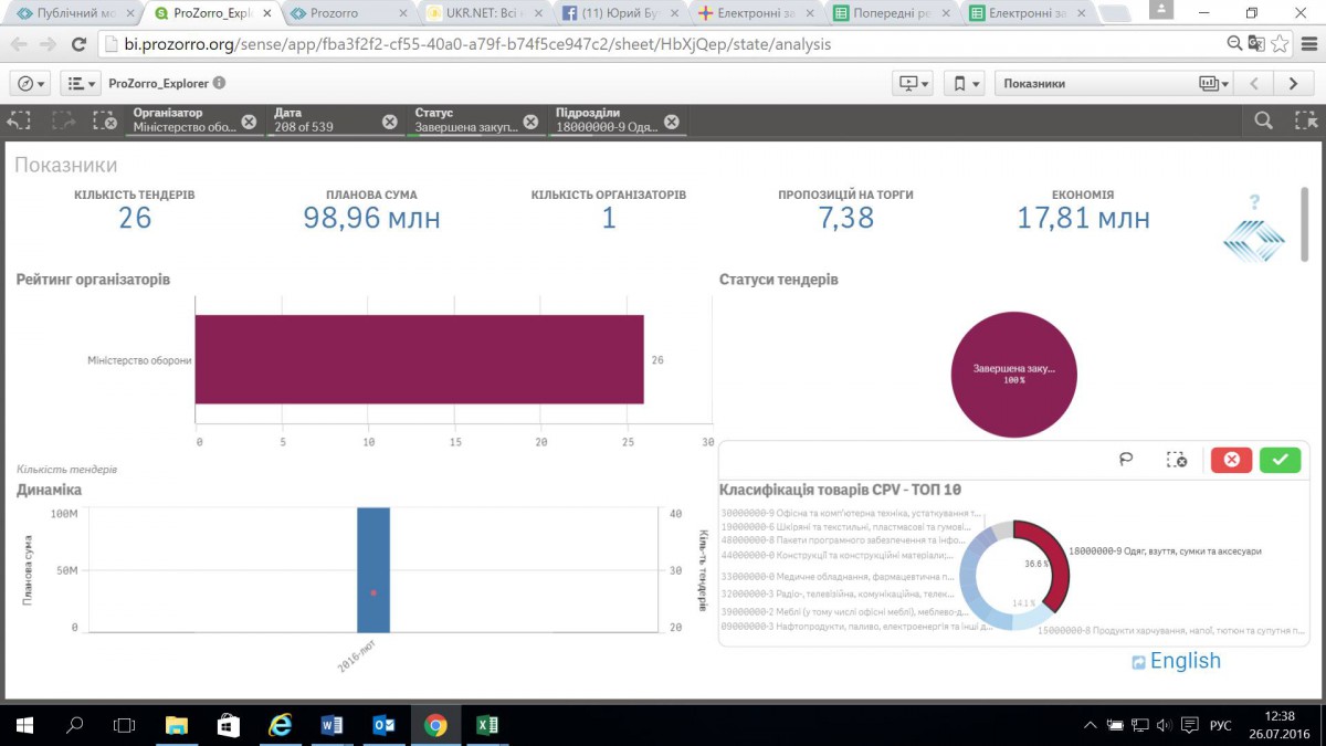 «Наблюдая сейчас со стороны на то, что творится в закупках, оставив побоку эмоциональную составляющую, решила я проанализировать, что же происходит в Департаменте госзакупок и Комитете конкурсных торгов Министерства обороны в этом году. Я, конечно, могу и инсайдерскую информацию получить, но решила для чистоты анализа ограничиться открытыми данными. Аналитика Прозорро и сайт МО мне в помощь (все цифры на утро 26 июля 2016г.). Вот такая картинка первая (и немножко сравнения со всей страной и 2015 годом). Всего 224 тендера, включая и тендеры по техническим закупкам, которые в прошлом году практически не проводились на электронных площадках, 45,1% — впустую: или отменен тендер (32,6%), или не состоялся (12,5%). О чем это говорит? Подготовка – ну никуда не годится, или документы «не железные», или с рынком не работали»,–пишет она.