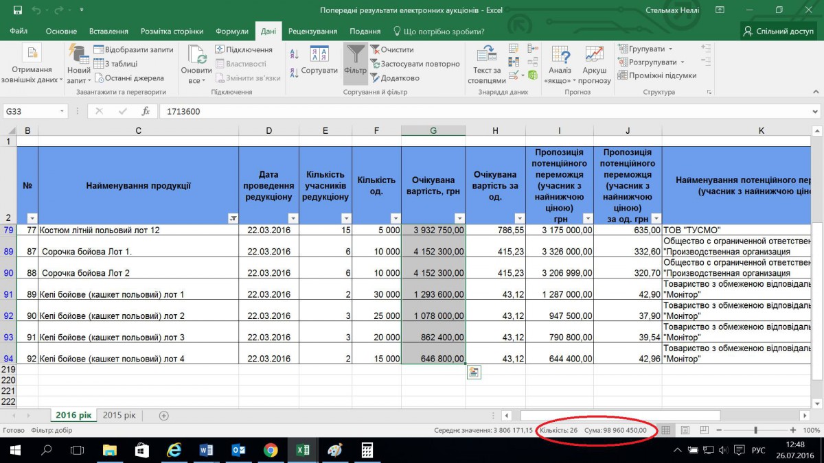 А дальше есть на сайте МО файл – Попередні результати електронних аукціонів