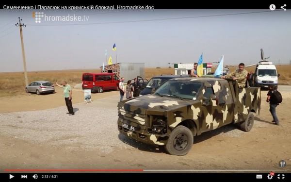 Также отмечается, что «на новом авто Парасюк бравирует среди активистов, которые организовали блокаду Крыма, и угрожает, что они вместе с «легендарным комбатом Семеном Семенченко» поедут «на Москву через Крым».