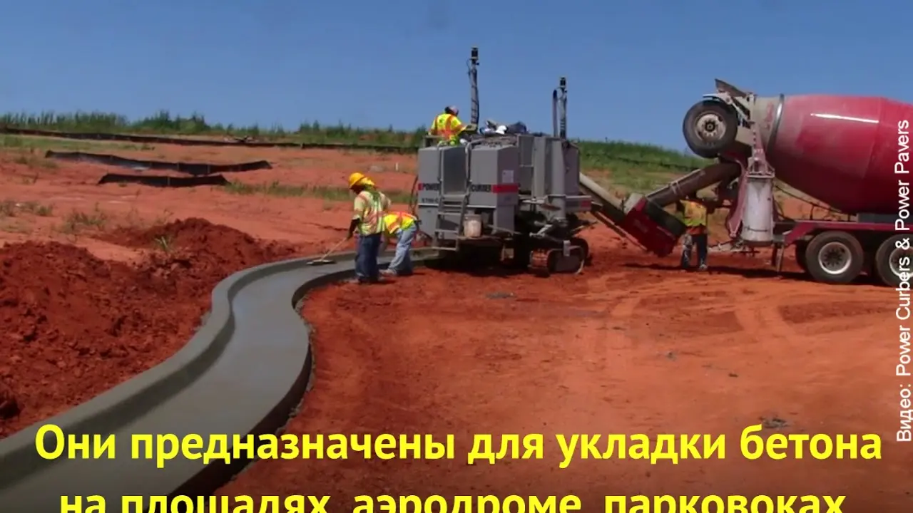 Специальная машина в автоматическом режиме прокладывает бордюр по заданной траектории