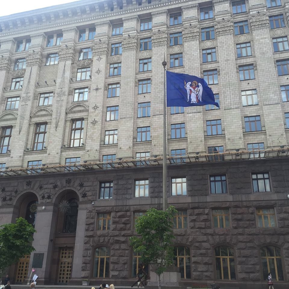 «Мы выполнили поручение заместителя городского головы Алексея Резникова и будем иметь в День Государственного флага Украины достойное знамя у нашего админздания. Таким флагом-красавцем не может похвастаться ни Кабинет министров, ни Верховная Рада. Кстати, такой же размер — 4,5х6 метров, и у флага Киева, поднятого рядом с Государственным», — комментирует поднятия флага управляющий делами секретариата Киевсовета Андрей Гота.