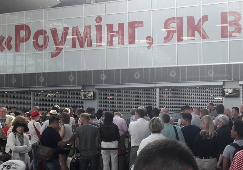 Как пишет Вадим Костюк, паспортный контроль заблокировали украинские туристы, чей рейс в Анталию был перенесен из-за попадания птицы в турбину. Он добавляет, что ни сотрудники аэропорта, ни правоохранители не реагируют на ситуацию.