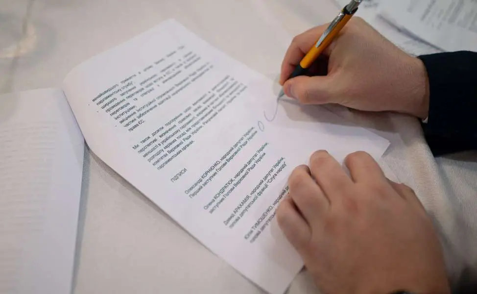 Под текстом, изложенным в выводах, стоят подписи представителей ряда политических сил Верховной Рады Украины – в частности, Давида Арахамии от фракции «Слуга народа», Юлии Тимошенко от «Батькивщины», Ирины Геращенко как сопредседателя фракции «Евросолидарность», Александры Устиновой от «Голоса» и т.д.
