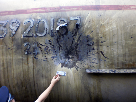 После выстрела в пустой цистерне образовалась метровая вмятина