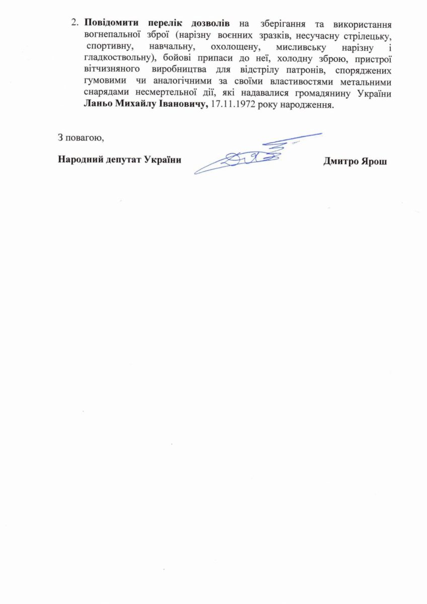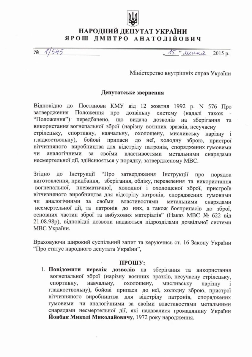 «Также нас интересует лицо легендарного уже Николая Йовбака — охотника-журналиста с карабином «форт», разрешения на который, по нашим данным, никогда не существовало», добавляют в организации Яроша.