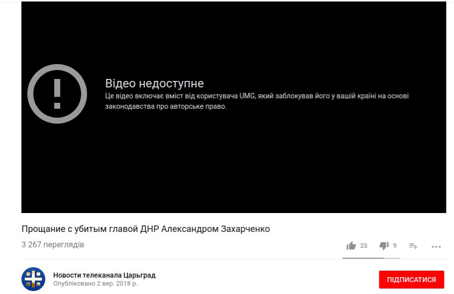 Видео удалены с каналов российского телеканала «Царьград» и сепаратистского «Оплот ТВ». В описании к видео говорится, что оно удалено по требованию Universal Music Group (UMG).
