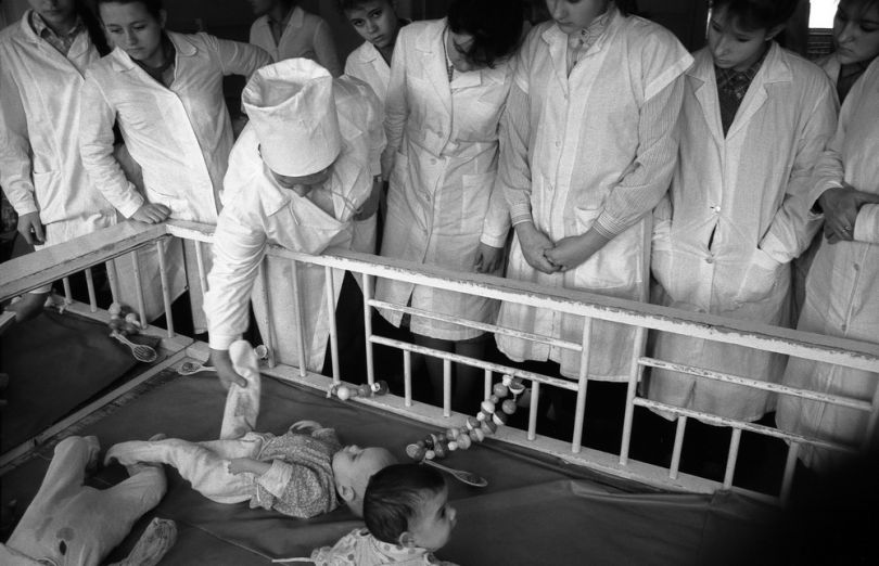 Совковый Дом ребёнка — казённо-тюремное учреждение, как и всё подобное в совке. Чтобы не давать матери длинный декретный отпуск — детей в СССР уже с первого года жизни могли забрать в ясли, где они круглые сутки кричали. Ещё одна из пратик совкового «воспитания» детей — крепкое пеленание, что крайне негативно сказывается на всём дальнейшем формировании личности ребенка.