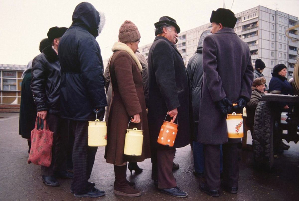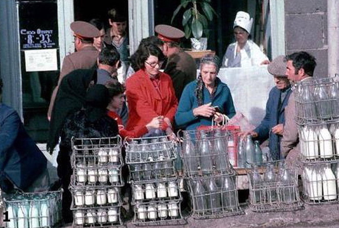 Иногда молоко можно было купить на улице, из бочки на разлив (как квас). Можете себе представить сейчас вот такую очередь за обычным молоком? Вот и я нет.