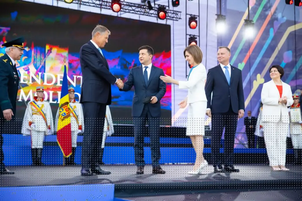 Зеленский поучаствовал в торжествах совместно с президентом Молдовы Майей Санду, польским лидером Анджеем Дудой и президентом Румынии Клаусом Йоханнисом. Главы государств посмотрели военный парад, который состоялся на площади Великого Национального Собрания. После этого президенты прошлись по центральной улице Кишинева.