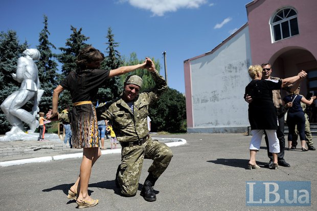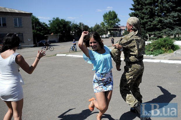 Селяне за свои собственные деньги устроили праздник с танцами и пригласили на него бойцов одной из бригад, которая стоит недалеко от населенного пункта.